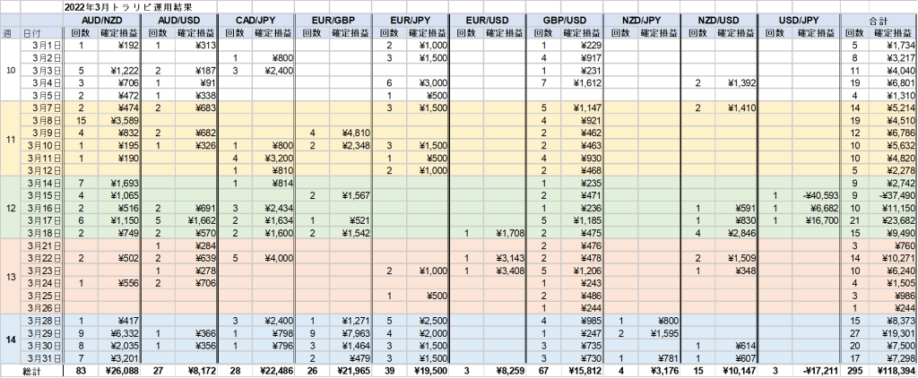 2022年3月の運用結果まとめです。