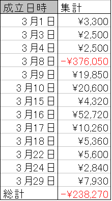 今月は-¥238,270の利益でした!