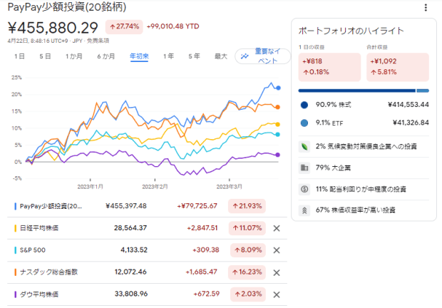 2023年4月22日時点のポートフォリオは次の通りです。