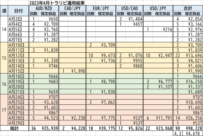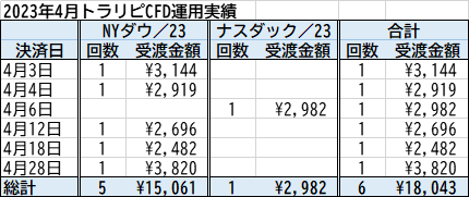 2023年4月のトラリピ&トラリピCFD運用実績まとめです。