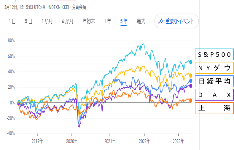 日経平均(日本)|NYダウ(米国)|S&P500(米国)|DAX(欧州代表でドイツ)|上海(中国)