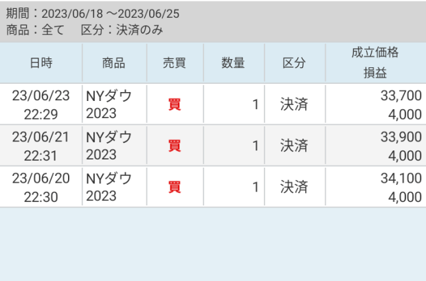 今週は売りトラリピの決済ありました。米国株は全体的に強気相場で上昇してきていたのですが、少し戻しがあった感じで週後半で決済されてました。