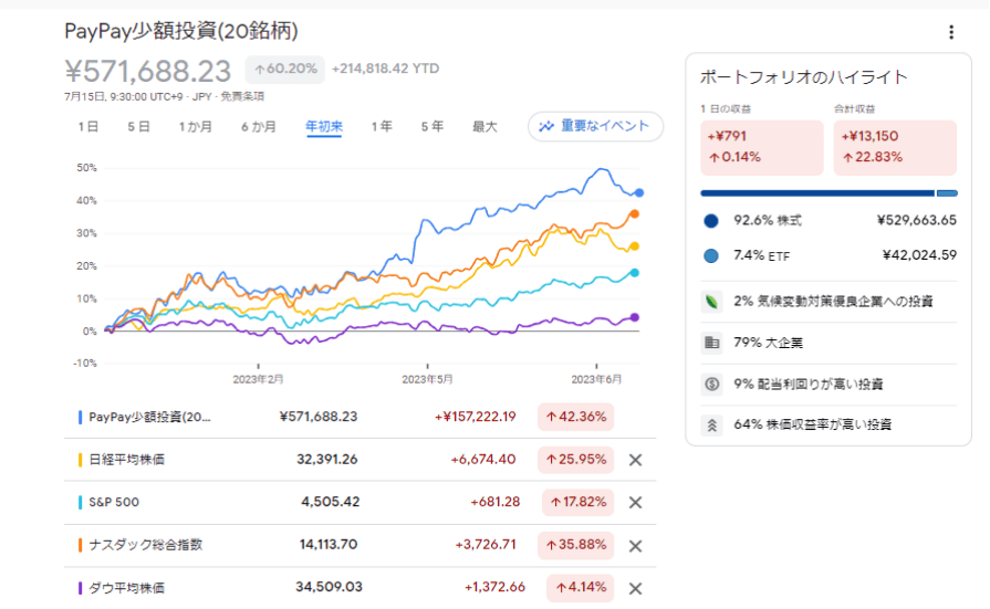 ◇2023/7/15時点のPayPay証券ポートフォリオ