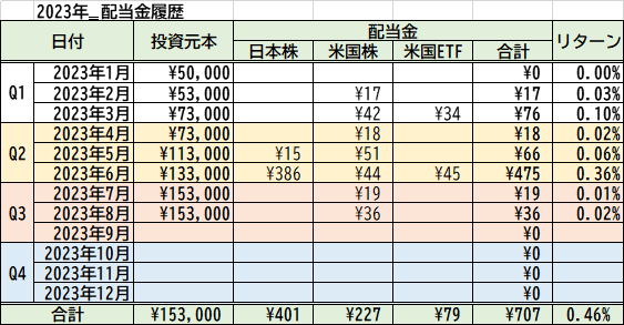 投資元本¥153,000に対して累計で¥707となりました。
