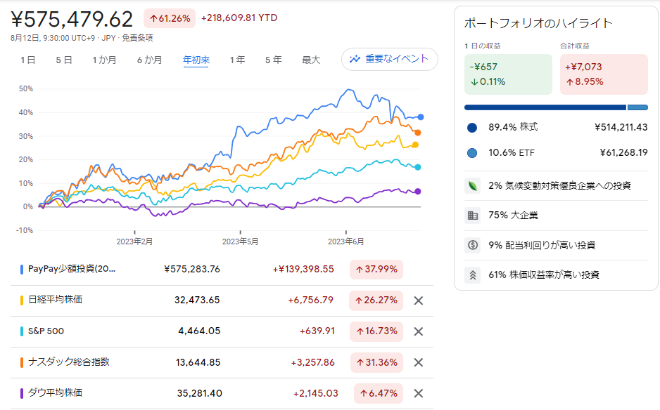 ◇2023/8/14時点のPayPay証券ポートフォリオ