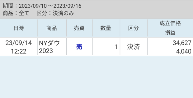 売りトラリピを多く仕掛けているのですが、まだ決済までは遠くて自分は決済がありませんでした。裁量で持ったNYダウを利確しました。
