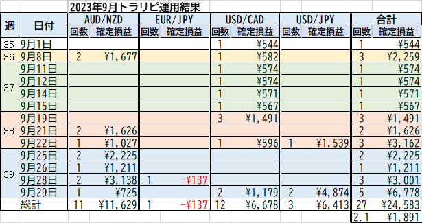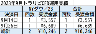 2023年9月のトラリピ&トラリピCFD運用実績まとめです。