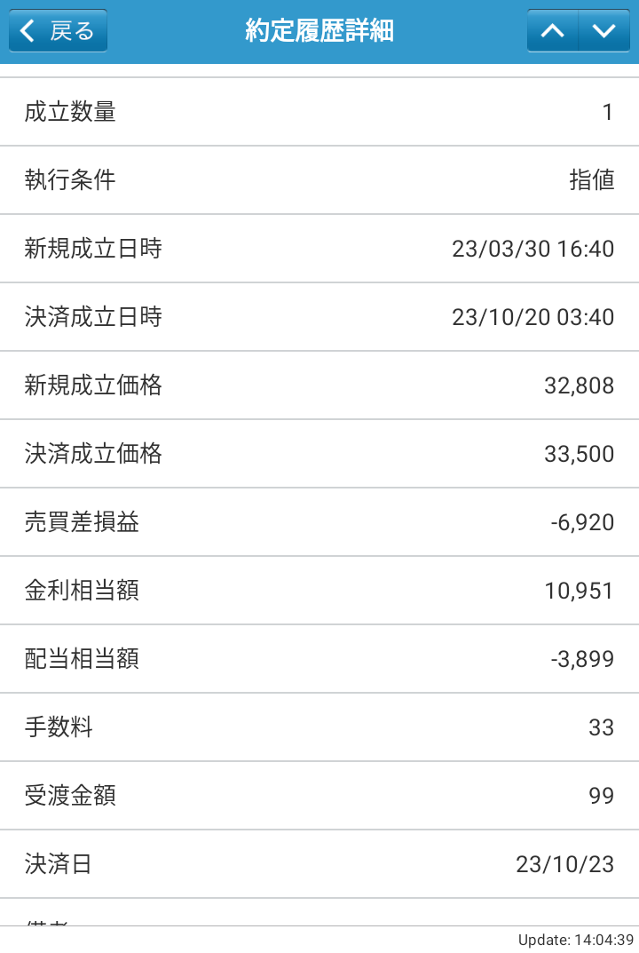 また年末のリセットが近づいてきている中で、2件はポジション整理しました。表示はマイナスですが、7か月分の金利相当金と配当相当金と合わせるとプラマイゼロにできました。詳細で見ると↓のような感じです。