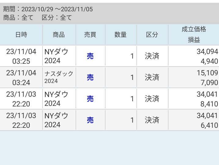 今週は10月に持っていた買いポジションをある程度利益が確保できたので利確しました。久々にたくさん決済してますね!