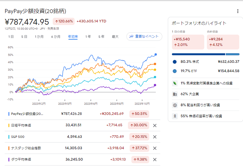 前回記事はコチラPayPay証券のポートフォリオ公開(2023/11/18)