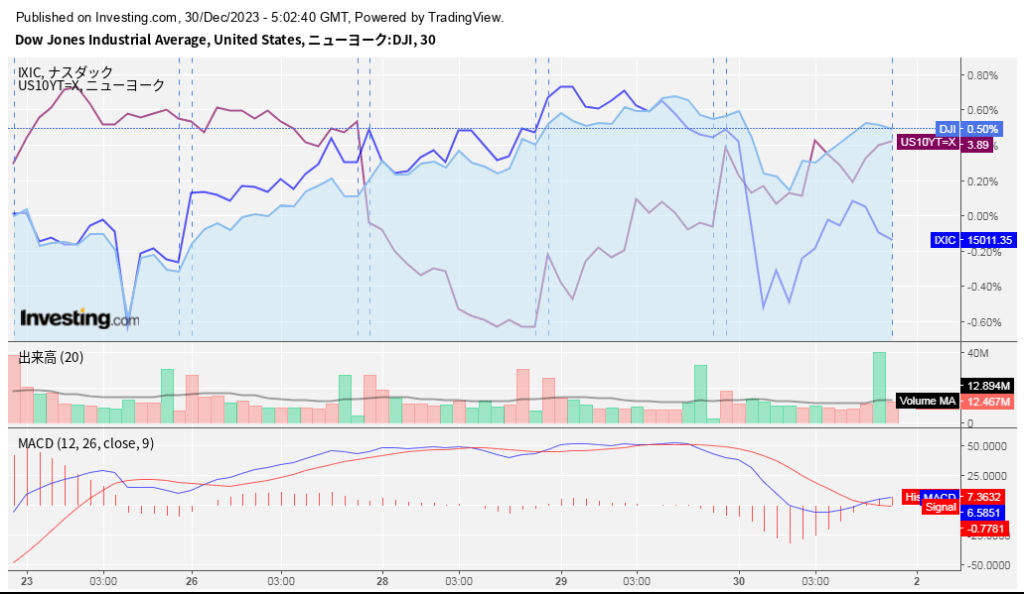全体的に大きな指標発表などは少なめでした。すでに休暇に入って手仕舞いしている投資家もいるので、市場参加者も減っていますね。