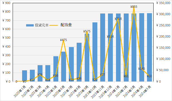 実際の配当金の推移も元本が増えていくと少しずつ増えております。