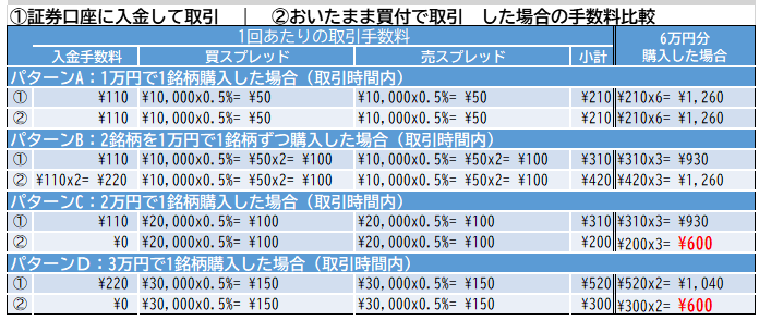 ※証券口座への振込手数料は銀行により違いますので、仮で~3万円で¥110、3万円~で¥220としました。(かなり安い気もします)