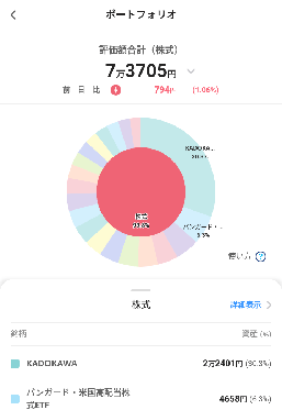 各銘柄をタップすると、そこからグラフを見ながらリバランスの調整もできる機能が付いています。