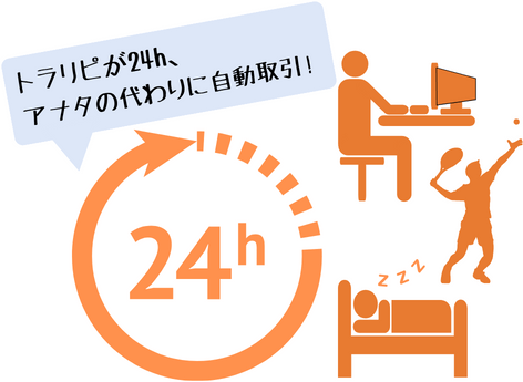 最初にあげた筆者が難しいと感じた中の、『24時間相場が動いている。』『急変動が起きて、値動きが激しいときがある。買い時がわからない』に対して、トラリピを活用することで強みにすることができます。